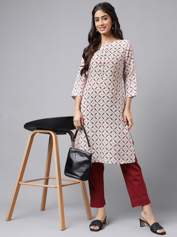 Women's Brick Red Crepe Foil Printed Straight Kurta